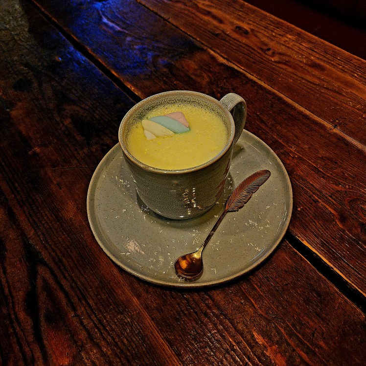 سیروپ پشن فرویت + بستنی انبه + پودر شکلات + خامه